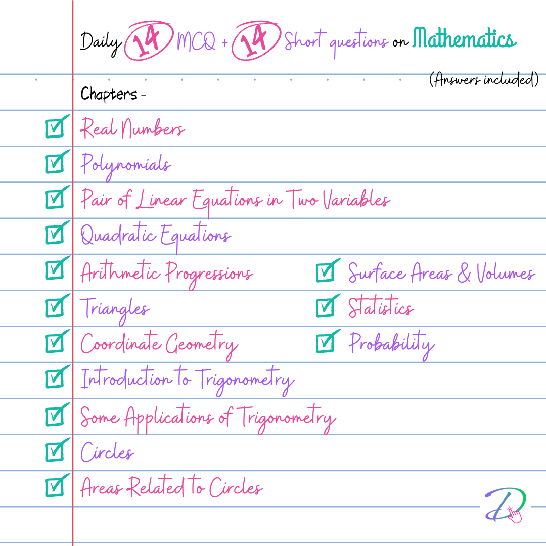 ✅ Every day: 14 MCQ + 14 Short Answer (one for each chapter)