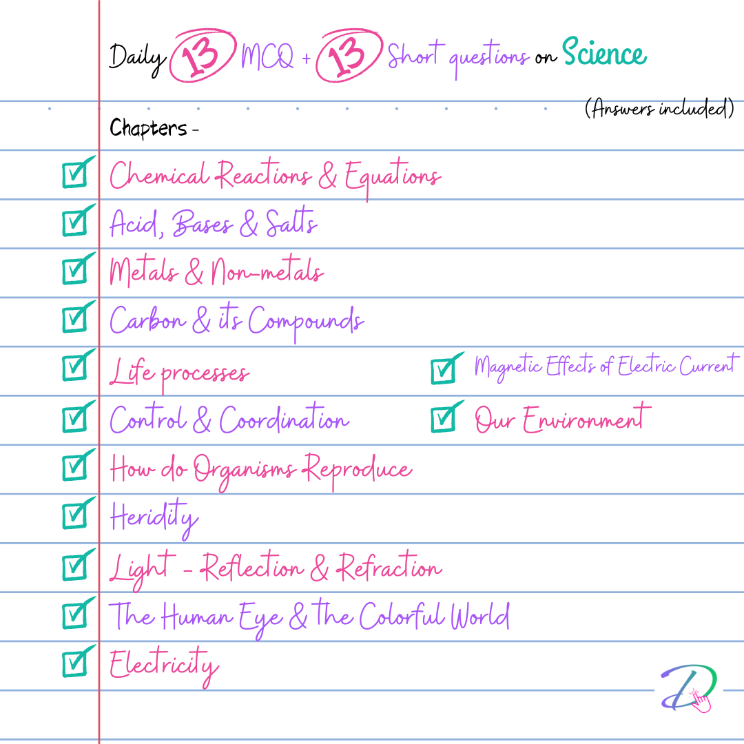 ✅ Every day: 13 MCQ + 13 Short Answer (one for each chapter)